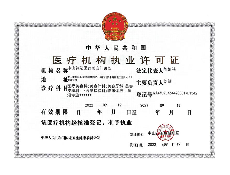 1. 單位名稱:中山韓妃醫(yī)療美容門(mén)診部有限公司
